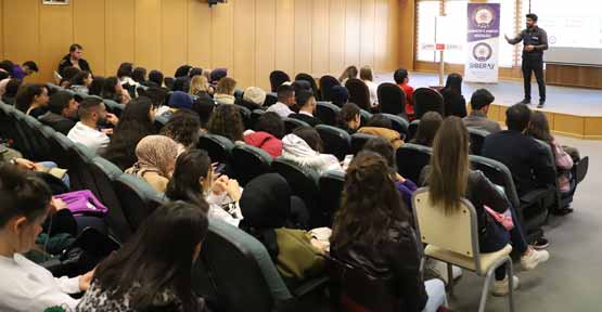 Sağlık Hizmetleri Meslek Yüksekokulu Konferans Salonu’nda gerçekleştirilen, İlk ve Acil Yardım Programı 2’nci sınıf öğrencisi Atakan Göğebakan’ın sunuculuğunu yaptığı seminere Gaziantep İl Emniyet Müdürlüğü’nden Veli Şamkılıç, konuşmacı olarak katıldı.