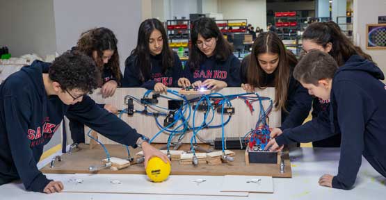 Doğuş Üniversitesi’nde düzenlenen ve buluşların şenlik ortamında yarıştığı etkinlikte, SANKO Okulları öğrencilerinden Betül Günaydın, Elif Ilgın Çınar, Kayra Köksal ve Beren Anlaş “En Sıra Dışı Tasarım”, Eren Özil, Simin Naz Camcıoğlu ve Yağmur Diken “En Yaratıcı Tasarım” ödüllerini kazanarak önemli bir başarıya imza attı.