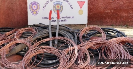 Gözaltına alınan hırsızlık zanlısının çuvalında 30 kilogram bakır kablo ele geçirildi.