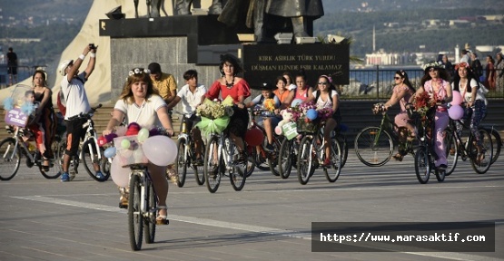 Çevredeki vatandaşların da yoğun ilgi gösterdiği etkinlikte, trafik polislerinin eşlik ettiği kadınlar, rengarenk bisikletleriyle sahil şeridindeki Atatürk Bulvarı'nda pedal çevirdi.
