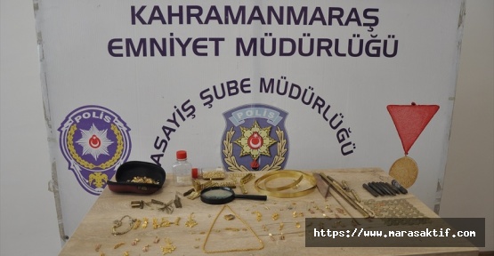 Dulkadiroğlu ilçesi İsmet Paşa Mahallesi'ndeki bir iş yerine operasyon düzenleyen ekipler, bakır maddeler, çok sayıda döküm mühür kalıbı, zincir kolye, ağırlık olarak kullanılan madeni paralar, büyüteç, altın parçaları, numaratörler, metal çubuklar ve yassı plaklar ele geçirdi.