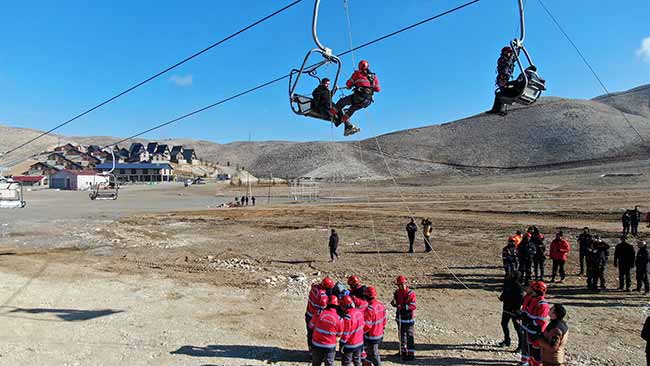 Valilik koordinesinde Büyükşehir Belediyesi İtfaiyesi, Yedikuyular Kayak Merkezi Arama Kurtarma Ekibi, AFAD, Jandarma Arama Kurtarma (JAK), AKUT ve Akbel İş Sağlığı ve Güvenliği Ekibi iş birliğiyle Yedikuyular Kayak Merkezi’nde teleferik hatlarında arıza durumunda mahsur kalan vatandaşları kurtarmaya yönelik tatbikat gerçekleştirildi.