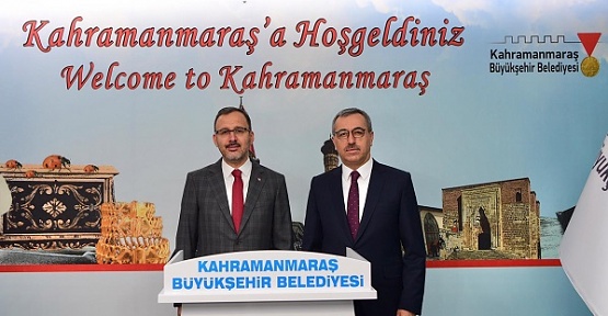 Kahramanmaraş Büyükşehir Belediye Başkanı Hayrettin Güngör, bir dizi ziyaret ve incelemeler gerçekleştirmek üzere şehre gelen Gençlik ve Spor Bakanı Mehmet Kasapoğlu’nu makamında ağırladı. Büyükşehir Belediyesi’ne gerçekleştirilen ziyarette Vali Ömer Faruk Coşkun, AK Parti Grup Başkanvekili Mahir Ünal, AK Parti Milletvekilleri Celalettin Güvenç, Ahmet Özdemir ve Cihat Sezal, AK Parti İl Başkanı Fırat Görgel yer aldı. Gerçekleştirilen ziyarette Büyükşehir Belediye Başkanı Hayrettin Güngör, Gençlik ve Spor Bakanı Mehmet Kasapoğlu’na yeni stadyum çalışmalarını da içeren sunum yaptı ve toplantının ardından şehre yeni stadyum müjdesi geldi.